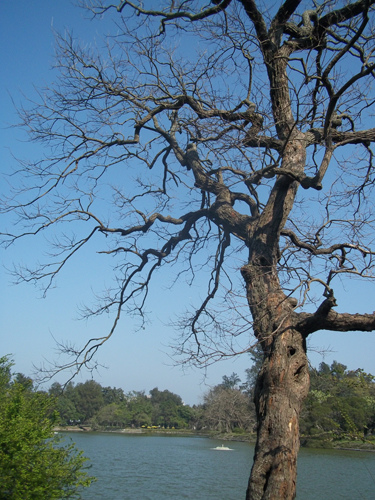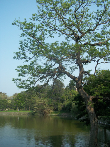 二月開春未久,湖畔的花樹,有的搶先茂綠,有的還慢慢地醞釀著。個把月過去,多半是按捺不住春的呼喚,紛紛張起新綠迎接。